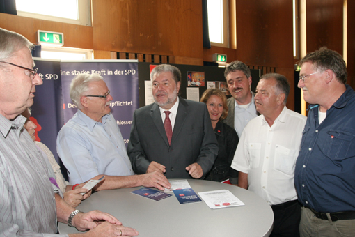 Im Kulturzentrum „das Haus“ in Ludwigshafen fand der 4. Tag der rheinlandpfälzischen SPD statt. Mit dabei auch einige Genossen aus der Südpfalz, die mit Peter Wilhelm Dröscher, Vorsitzender der AG 60plus von Rheinland-Pfalz einen Infostand präsentierten. Kurt Beck besuchte seine Altersgenossen und lobte ausdrücklich die vielen Aktivitäten der Arbeitsgemeinschaft 60plus.