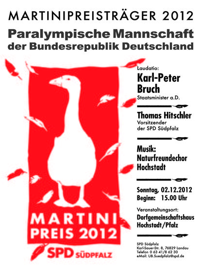 Die südpfälzische SPD verleiht den Martinipreis 2012 an die Paralympische Mannschaft der Bundesrepublik Deutschland.