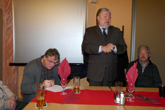 Beim 1. Stammtisch der AG 60plus im GV-BZA in2015 konnte Wolfgang Thiel, Vorsitzender der AG 60plus im GV-BZA, am 08.01.2015 fast 40 Teilnehmer im Nebenraum der Pizzeria-Toscana in Oberotterbach begrüßen. Kurt Beck, Vorsitzender der FES, Ministerpräsident a.D. und SPD-Ehrenvorsitzender von RLP, war der Gastreferent. Er informierte in eindrucksvoller Weise über den Zweck, den Auftrag, die Organisation und  die Arbeit der ältesten politischen Stiftung in Deutschland. Zu Beginn seiner Ausführungen reflektierte er zunächst auf den brutalen Terroranschlag in Paris und versicherte: „Wir werden unsere Europäischen Grundwerte, und dazu gehört die Presse und Meinungsfreiheit, von niemanden zerstören lassen“, so Kurt Beck.
