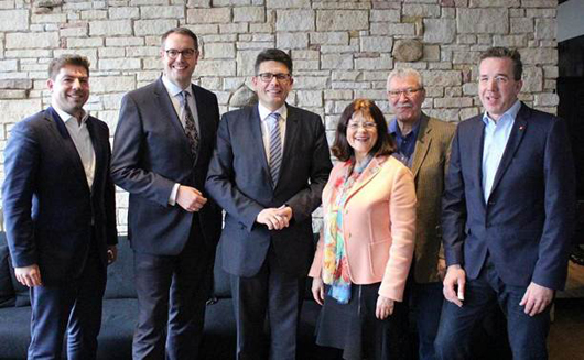 Torsten Blank (3.v.l.) mit SPD-Prominenz der SPD-SÜW bei der Pressekonferenz am 03.02.2017 in Landau in der Vinothek PAR-TERRE